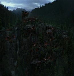The Ape Village was later set ablaze by Koba when he usurped Caesar. Following its destruction, the apes abandoned their former home and made salvation in a hidden cavern with a tunnel system in a waterfall.