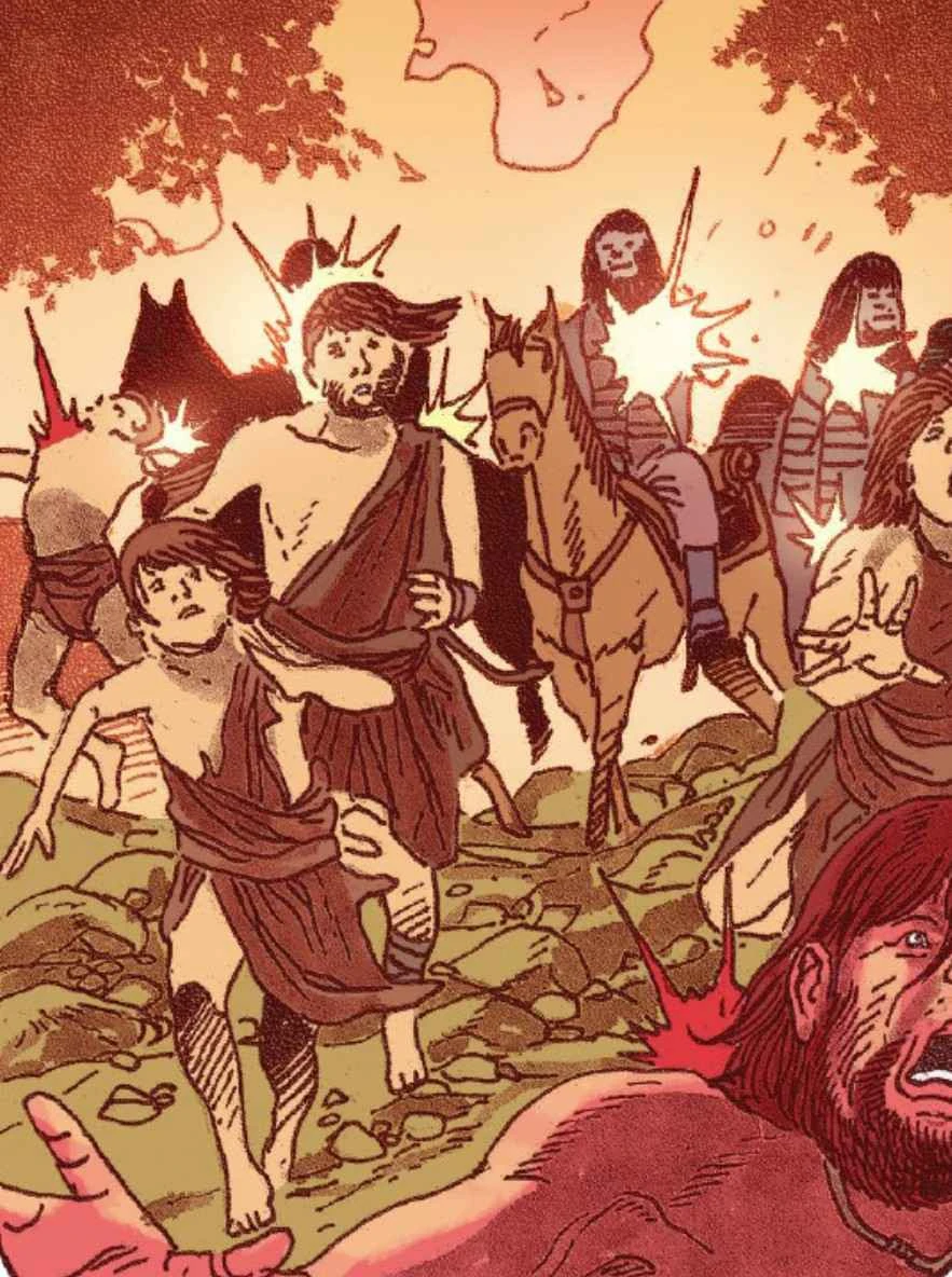 Although Lucan, now a member of the council, secured the best medical care, the diagnosis was grim. They made Bolo as comfortable as possible until the end, and even Elco came to visit him once he learned of Bolo’s condition—but by then, it was too late. Bolo had died, and his body, treated like waste to be recycled, was taken away by gorillas in a cart to be used in a tannery. Meanwhile the gorillas took Bolo´s remains in the cart, Lucan told his son that Bolo went to live in the country, a nice place where he would be well cared for. Elco expressed how much he would miss Bolo and Lucan offered him to come inside the house.