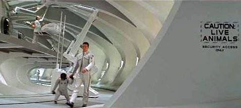 All of this means little to Leo, who is solely concerned with following the homing signal of his space station, the Oberon. He is accompanied by a group of fugitive humans, who seemed to expect deliverence through his leadership, and by Ari and Krull. However, on tracing the signal, Leo discovered only the decayed ruins of the Oberon, which had crashed onto the planet millenia ago. The ruined station's nuclear power cells, despite their age, managed to stand the test of time and were still supplying sufficient power that allowed Leo to trace the homing beacon's location, reboot its computer systems and view the ship logs, as well as still having one full fuel cell on board its afterburners. The ape and human populations are descended from the Oberon's crew. Furthermore, Leo finds the origin of the name 'Calima' in a partially obscured sign aboard the Oberon, which had read CAution LIve aniMAls. This was the legendary holy place of the apes, where Semos had led the apes in bloody revolt against their human masters. To prevent the ruins from being desecrated, the apes built effigies around it, as a death penalty warning to stop travelers from setting foot into Calima.