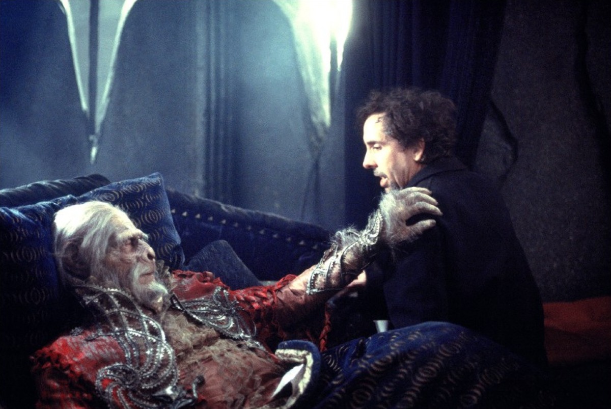 Charlton Heston as Zaius with director Tim Burton.