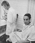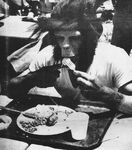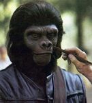 "When there were crowd scenes or something like that, we had about 78 to 80 make up personnel." "There was no time to remove the appliances at mealtimes, and we had to make sure the actors could eat well, or they'd weaken and slow down their work. The makeup allowed them to open their mouths okay, but they had to at first use a mirror to show them where to place the food! They had to shove the food clear through the ape's outer mouth into their own inner mouth, so to speak. But they soon learned to do it without mirrors. They find it is easier to chew solids cut into small cubes. Drinking is done through straws. Smoking is done through long cigarette holders - and James Whitmore had to find a long stem for his pipe. They must avoid sloppy foods like stews. The actors have never complained about not being able to carry on their normal feeding habits or other activities. We had to make them comfortable or their ability to act would have been affected. We use long applicators that can be used to clean out noses - but they take inhalers and pills that dry out their noses - same type stuff prescribed for allergies."[4] - Creative Makeup Designer John Chambers.