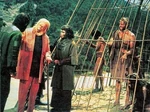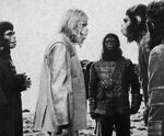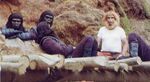"We were up at Point Dume, which is where we shot the ending - the Statue of Liberty, the caves, all that stuff. We were out there quite a while, a good week or more: the first day we met at Fox, we were made up and then driven all the way out to Dume (over an hour driving). Then, that night, we had to be driven all the way back to Fox and have the makeup taken off. That first day was just insane. Chuck was the one who said, 'Look, you've got to do something for Roddy, Maurice and Kim', and so, they got us a helicopter and took us back and forth that way from then on. That cut the time down considerably." - Kim Hunter[7]