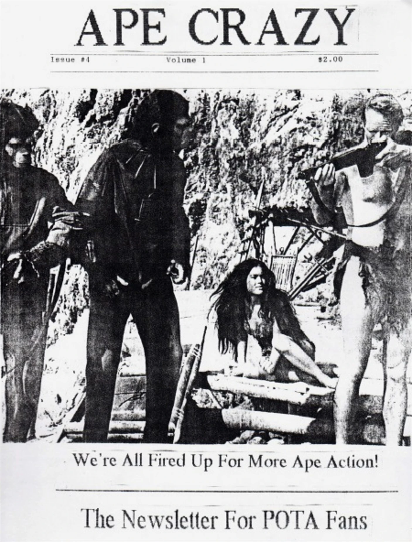 In the December 1991 issue of Adventure's Apes comic, Cypress, California-based brothers Mark & Tim Wasylyszyn responded to Hoknes' original letter with plans to start their own newsletter. The result was a second fanzine, Ape Crazy, which ran for seven issues in 1992-1993. Dave Merritt was assistant editor on the later issues. Ape Crazy mixed reviews of the comics and films with Apes and other sci-fi news. It also included reprints of two Brown & Watson comic strips, courtesy of Jerry W. Brown; Ship Of Fools (retitled Adventures on the Planet of the Apes) and Pit Of Doom (retitled Trouble on the Planet of the Apes). Ape Crazy collaborated closely with its 'sister publication' Ape Chronicles under the 'International Fan Club' banner during its existence, and the Wasylyszyn twins continued to write for Ape Chronicles subsequently. By either an odd coincidence or a very obscure tribute, the Planet of the Apes Game for PC produced in 2001 included, as part of its back-story narrative, the recorded announcement that "the remaining battalions of the human resistance army stationed in New Cyprus and Saskatoon were attacked" and had been defeated - these first two Apes revival fanzines were based in Cypress and Saskatoon.