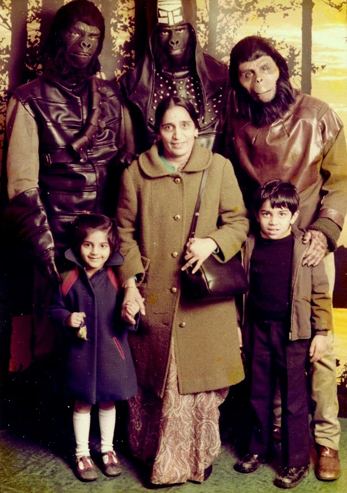 The Shah family "with Galen, Zako and Urko" at Selfridges in London, Winter 1975. (Photo courtesy of Nainesh Shah)