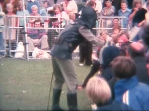 - (About 1977 or 1978?): Plymouth Hoe ('live show', filmed by Plymouth local Derek Tait who recalls: "I remember seeing the ad for the show in our local paper, the 'Evening Herald'. The Apes had been due to appear at Wadebridge in Cornwall but this show was cancelled for some reason, maybe the weather. The show on Plymouth Hoe featured jousting in the first half and then the Apes came on for the second part of the show. There was a long break between the jousters finishing in the show and the Apes coming on. At the time, I thought that the jousters were probably the same people playing the Apes! They used the old Hoe Theatre, now gone, to put on their costumes and masks. I only remember three Apes at the show, Galen, Urko and another gorilla, but looking at the film again there appears to be 4-5 Apes at the event. I think that maybe there had been horses involved in the show and the Apes got off them before I started filming. There were certainly horses in the jousting event that took place before. I filmed as much as I could and then, as the Apes were going back to the Hoe Theatre to change, I caught up with them and they posed for some photos. They were great pictures, Urko held his rifle in the air, but unfortunately, they were lost or thrown away many years ago. Wish I still had them". Although Derek is unsure of when the show took place, he believes that there was also a celebrity from the TV show, 'Crossroads' there - Carolyn Jones, who played Sharon Metcalfe in the show from December 1977.)