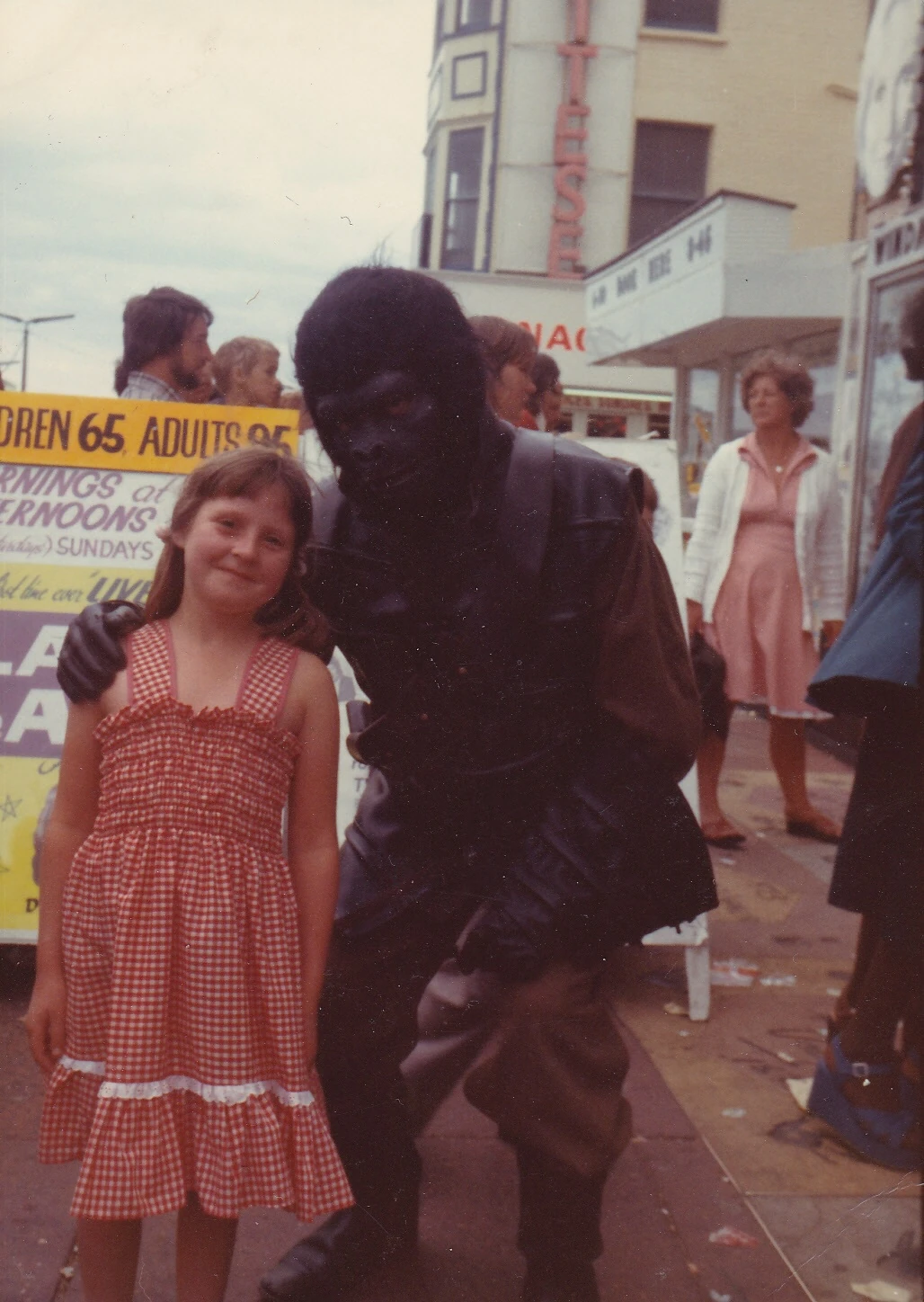 Picture with a stage show gorilla. (Photo courtesy of Andrea Pamieta, "This is me taken at the live summer show in Great Yarmouth which ran for 8 weeks in 1976.")