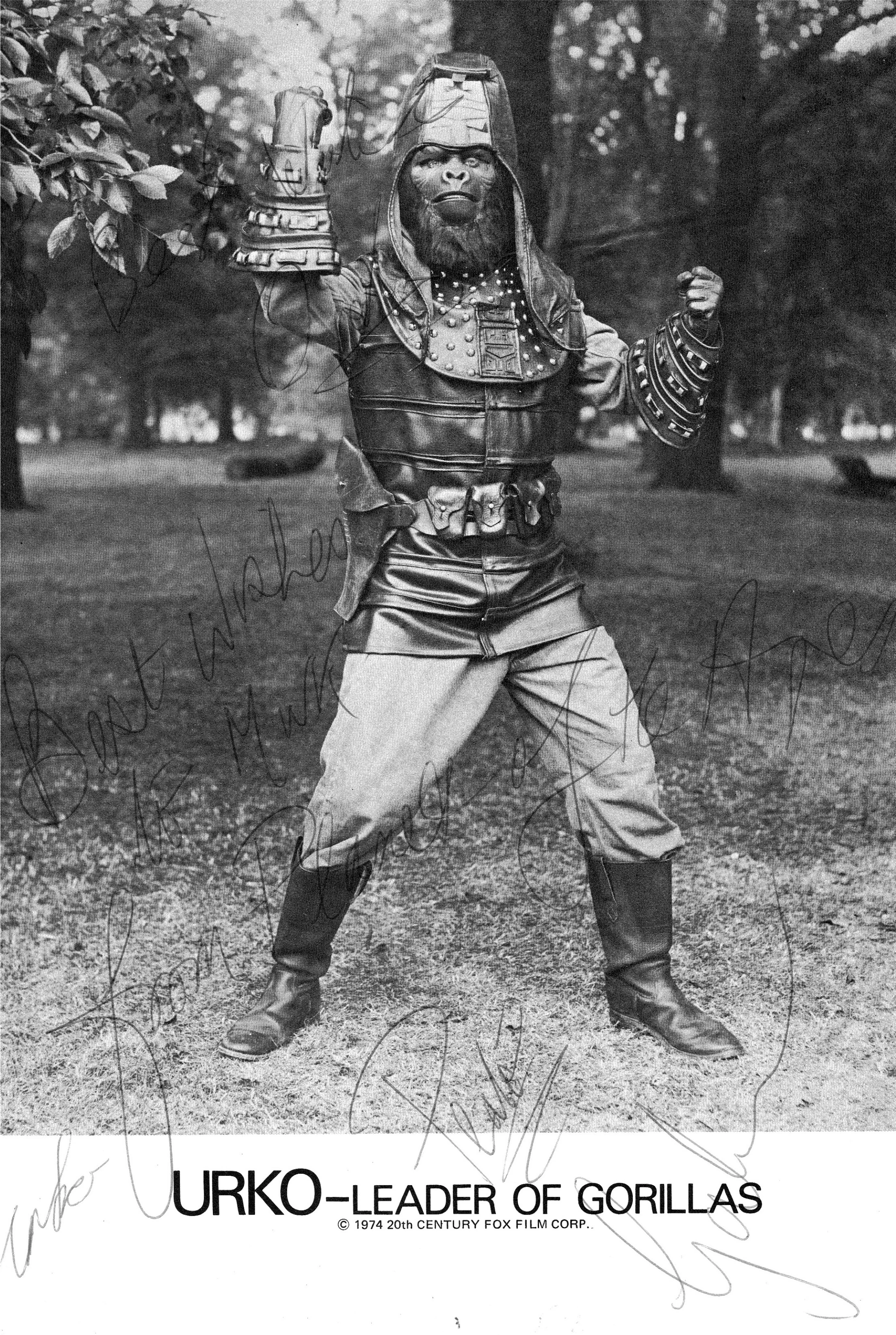 - A badge from the time mentions the troupe appearing as part of the 'Western Rodeos Wild West Show'. A 'Western Rodeos' appearance at Vicarage Farm, Sittingbourne, Kent, in the 1970s featured cowboys, stage coach chases and Urko with his gorillas. A programme from this show included a photo signed by both 'Dr. Zaius' and 'Galen'.