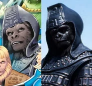 - Doctor Zaius is clearly traced from a photo of the Mezco action figure of the character.