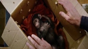 Will Rodman, a San Francisco scientist, has been working for five years on "ALZ-112", a genetically-engineered retrovirus that may be a cure for Alzheimer's Disease. ALZ-112 not only repairs brain cells, but genetically enhances them, giving chimpanzees a human level of intelligence. One of his test subjects is "Bright Eyes", a female chimpanzee that was recently captured from the West African Jungle. Much to everyone's shock, Bright Eyes goes on a rampage two months into her trial, before security is forced to kill her in front of board members, thus destroying any chance of developing ALZ-112 further. It is then discovered, however, that Bright Eyes' aggression was not due to the drug, but due to her maternal instinct to protect her baby, to whom she had secretly given birth a day or two earlier. Will's money and power hungry supevisor, Steven Jacobs, orders all twelve test chimpanzees put down after Bright Eyes' rampage, but Robert Franklin, the chimp handler responsible for carrying out this order, cannot bring himself to kill the chimpanzee baby, and instead gives it to Will, who names him Caesar and raises him in his house.