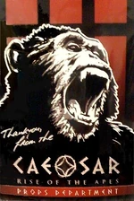 March 2010 brought news that Fox had hired Rupert Wyatt, writer/director of The Escapist, to direct the once-again-retitled Caesar: Rise of the Apes. Wyatt later recalled, "Just after I had finished 'The Escapist' I was sent the script for this, pre-Scott Frank, and it was a very different movie. It was written by the same writers, Rick Jaffa and Amanda Silver, who originated the script. Contrary to a lot of reports, people think this was Scott Frank's project from conception, which it wasn't. They had a take on it that ultimately was very different from the film you saw. Scott Frank got involved in that and developed it in a certain direction the studio didn't want to go, didn't see eye-to-eye, I'm not entirely sure what happened but he left the project. Rick and Amanda came back onto the project and then the studio decided it was a film they really wanted to make. They started seeking a new director, which is when I came in. Rick and Amanda in the meantime had reconfigured certain aspects of the original script and evolved it to such a place that when I got the script I remembered it from three years before but it had become very different and much more exciting to me. It became less a story of domesticization of a pet and more about an uprising and a Che Guevara story."[8] Details of the script were leaked in March: "Like Frank's version, 'Caesar: Rise of the Apes' is centered on genetic research. Will is a doctor trying to cure Alzheimers, a disease that afflicts his father. He's working with monkeys to create a benign virus that can get into brain tissue and restore functionality. After his research is shut down he's left with just one chimp, the child of his most promising subject, and Will raises him at home. Young Caesar is incredibly intelligent for an ape, and over time he continues to mutate and evolve, looking less like a chimp and moving on from sign language to actual speech. Eventually Caesar ends up leading an army of apes in an uprising just as a catastrophe strikes mankind." It was also reported that the movie would include nods to the original movie and tie directly into the original movie series: "TV newscasts recount the launch of a space craft called the 'Icarus', led by a Colonel Taylor, which eventually disappears while going around the dark side of Mars... A female scientist is named Stewart, which was the name of the female Icarus crew-member. Dodge and Landon, also Icarus crew-members in the original film, appear as names, but in very different roles than in 'Planet of the Apes'. Dodge is a bad guy, in fact."[9] These 'nods' had been included right from the earliest draft scripts, with the studio even asking the writers to tone them down; instead they just used more obscure references that went over the studio executive's heads. The idea of including Taylor's ship appeared about the third or fourth draft, around late 2007. Mark Bomback (Live Free Or Die Hard) was brought in as an uncredited 'script doctor', and among his contributions was Caesar drawing the shape of his bedroom window on his cage wall to remind him of home. Wyatt took this concept further by using the window shape as Caesar's logo - as featured in on-screen graffiti and in early publicity material.[7]