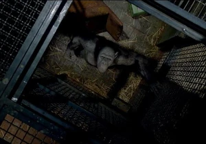 Caesar inherited his mother's high intelligence due to the drug, thus learning at a fast rate. Caesar is able to learn sign language with the help of Will and a veterinarian named Caroline Aranha. After three years, Will also gives a sample of ALZ-112 to his father, Charles, who is suffering from Alzheimer's Disease. At first his father improves but five years later, his body's immune system develops antibodies that fight off the virus and his dementia returns. In his state of dementia, Charles gets into his neighbor's car and turns it on, the key carelessly left in the ignition. He presses the gas and hits the cars in front of him and behind him, getting the attention of the neighbor, Hunsiker, who threatens and pushes down Charles. Caesar is also alerted to the situation and jumps out of a window, attacking and biting the neighbor's finger off in Charles's defense. After the incident, Caesar is forced to leave Will's house and is held in the San Bruno Primate Shelter run by John Landon, where the apes are held in cages, except during intermissions when they are released into a jungle-themed play area. The apes inside the facility are treated cruelly by Landon's son, Dodge, who works as a guard there.