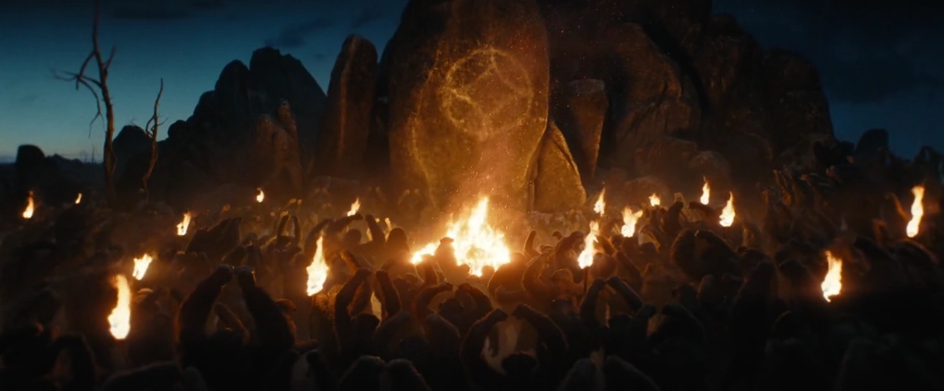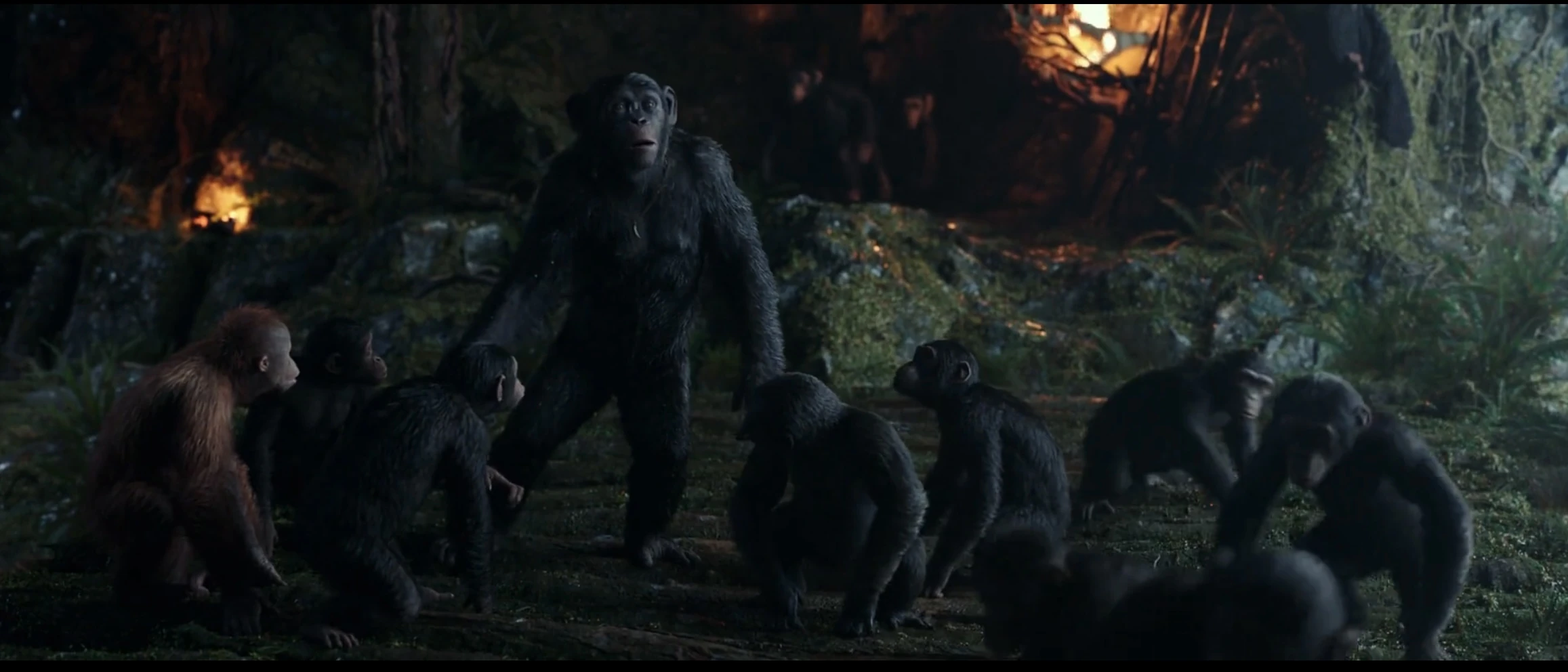 As the apes descended into chaos over the death of their leader, flames unexpectedly engulfed their homes, intensifying their panic. However, their fear was alleviated when Koba emerged, seizing the moment to blame the humans for both their king's demise and the devastation of their territory. He urged the apes to retaliate against the humans while they still had the opportunity. Consequently, the ape clan rallied behind Koba, fully uniting against their human adversaries.