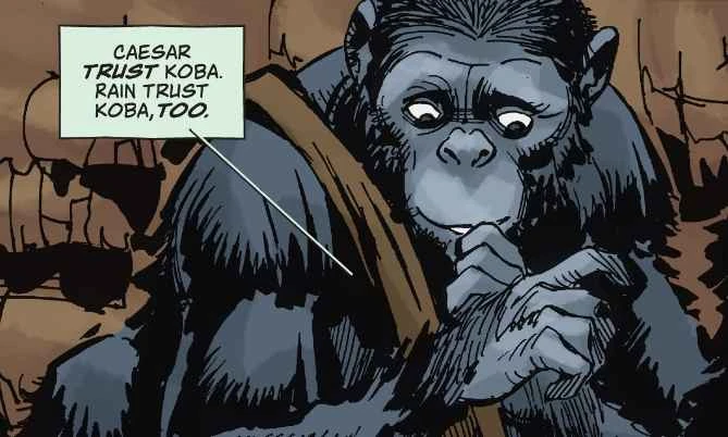Caesar quieted the council, warning that they risked losing everything they had labored for over the last ten years if they chose to engage in war. He then closed the council session, allowing time for reflection on the matter before reaching a decision by the following day. Koba, a bonobo who had endured mistreatment and suffering at the hands of humans, insisted that Caesar must demonstrate strength to make the humans recognize the capabilities of the apes.
