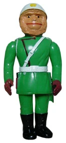 Episode 3 ("The dangerous Mountain calls!"): The gun turns out to belong to a human male, Gôdo. The traps were meant for the apes as this lone man has been fighting for his survival. The police apes know about Gôdo and his traps and are reluctant to enter his territory, but Gebâ using his laser-whip forces them to enter. All four humans are eventually captured. Gebâ, in disobedience to his superiors, tries to stir the villagers into killing Gôdo, while Pepe tries to convince them to save Gôdo. Then a village witchdoctor mandrill appears and sides with Gebâ. Gôdo is about to be executed by firing squad when Sabo, higher up the chain of command, arrives to take custody of him. A flying saucer appears overhead.
