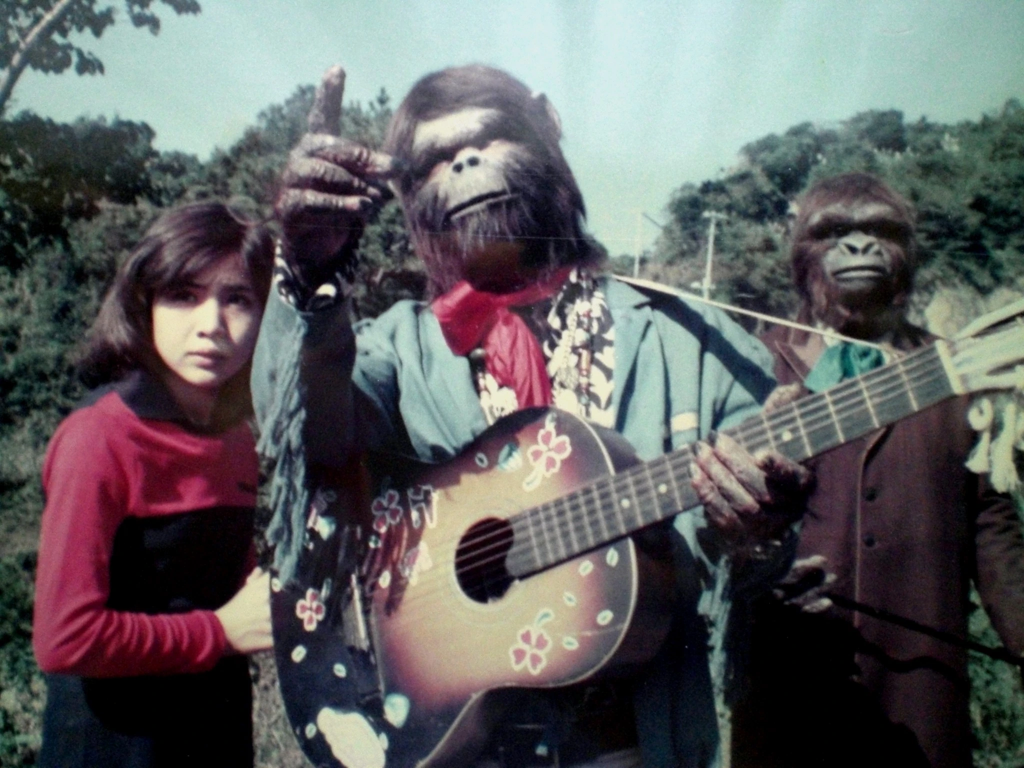 The Planet of the Apes movies were hugely successful in Japan; Japanese audiences were treated to an extended cut of Conquest of the Planet of the Apes because of their devotion to the movies. [1] In response to the popularity of the movies, a Japanese company, Tsuburaya Productions, created a TV series consisting of twenty-six half-hour episodes in 1974, with a storyline remarkably similar to Planet of the Apes but without actually making any reference to the franchise. 'Saru no Gundan' (猿の軍団, literally 'Army of the Apes') concerns a woman and two children who wake up in a world populated by sentient apes. While it doesn't directly contradict the official Planet of the Apes universe, the regular appearances of a mysterious UFO (albeit created by advanced humans) does cause some problems fitting it in with the established continuity. Although reportedly not a hugely popular show, it nevertheless completed its 26-episode run, unlike either of the Apes TV shows being made around the same time in the US. The original series has never been translated in its entirety into English, but in 1987, Sandy Frank Entertainment re-edited and translated them into a 97 minute movie and released it in the US as 'Time of the Apes'.